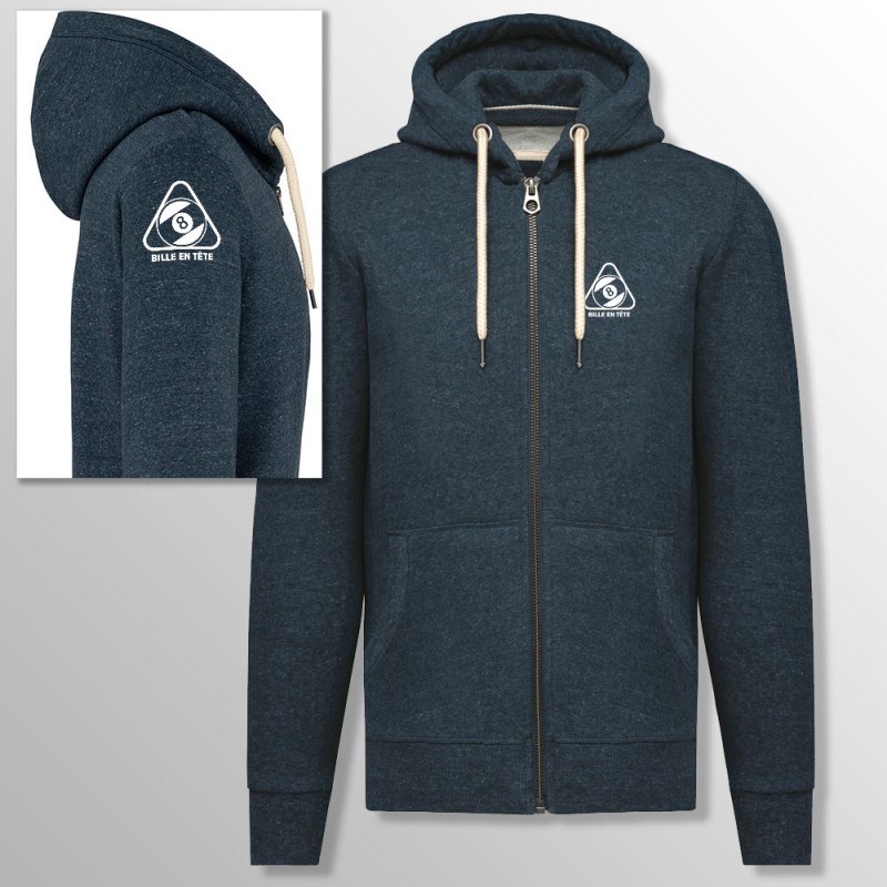 Veste zippée effet vintage, chaude et confortable, Logo Bille en Tête sérigraphié côté cœur et épaule.